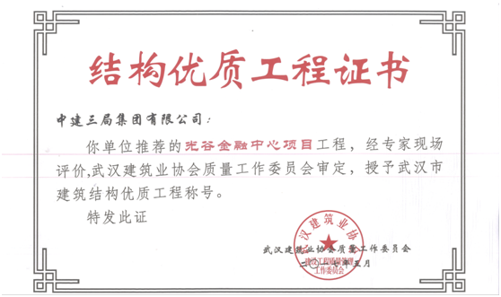 6月21日,公司承接的中建三局二公司華中公司光谷金融中心項目主體結(jié)構(gòu)工程經(jīng)專家現(xiàn)場評價,武漢市建筑業(yè)協(xié)會工作委員會審定,被授予“武漢市結(jié)構(gòu)優(yōu)質(zhì)工程”稱號。