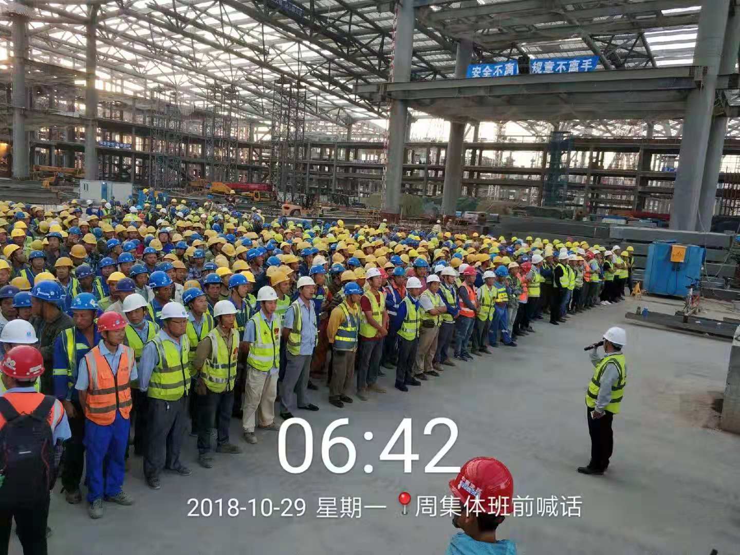 為實現(xiàn)2018年12月30日標(biāo)準(zhǔn)展廳節(jié)點以及2019年1月30日非標(biāo)展廳節(jié)點的目標(biāo),10月25日,深圳國際會展中心(一期)項目召開“百日會戰(zhàn)”誓師大會,中建三局二公司副總經(jīng)理徐國政等諸位領(lǐng)導(dǎo)出席此次大會,項目管理人員、主體勞務(wù)隊負(fù)責(zé)人共80余人參加大會。睿啟建筑作為本項目勞務(wù)主體的一員也被應(yīng)邀參加。