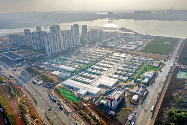 武漢“兩山”醫(yī)院在建筑設(shè)計、結(jié)構(gòu)設(shè)計、機電設(shè)計、隔離區(qū)設(shè)計以及施工建造等方面,均具有多項創(chuàng)新點。專家組認為,“兩山”醫(yī)院首次在應(yīng)急醫(yī)院設(shè)計中采用模塊化設(shè)計、細化潔污分區(qū)、創(chuàng)新衛(wèi)生通過室等設(shè)計,集成了一套高效可靠的應(yīng)急醫(yī)院防擴散設(shè)計技術(shù),解決了呼吸類傳染病應(yīng)急醫(yī)院快速建造和安全保障的難題。創(chuàng)新了分階段逆向設(shè)計、現(xiàn)代物流優(yōu)化、模塊化施工、快速驗收等組合技術(shù),形成了設(shè)計、施工、物流與工藝優(yōu)化高度融合的應(yīng)急醫(yī)院一體化建造技術(shù),實現(xiàn)了極限工期下應(yīng)急醫(yī)院快速建造、快速交付。采用模塊化單元密封及氣壓控制病房防擴散技術(shù)、“兩布一膜”整體防滲和“活性炭吸附+紫外光降解”工藝的污水處理技術(shù)、干式脫酸醫(yī)療廢物無害化焚燒技術(shù),形成了多維度管控的防擴散集成技術(shù),實現(xiàn)了應(yīng)急醫(yī)院“零擴散”“零感染”。應(yīng)用5G、AI、物聯(lián)網(wǎng)等現(xiàn)代信息技術(shù),研發(fā)了應(yīng)急醫(yī)院智能化運維管理平臺,實現(xiàn)了智慧安防、智慧物流、遠程會診、智能審片、“零接觸”運維。